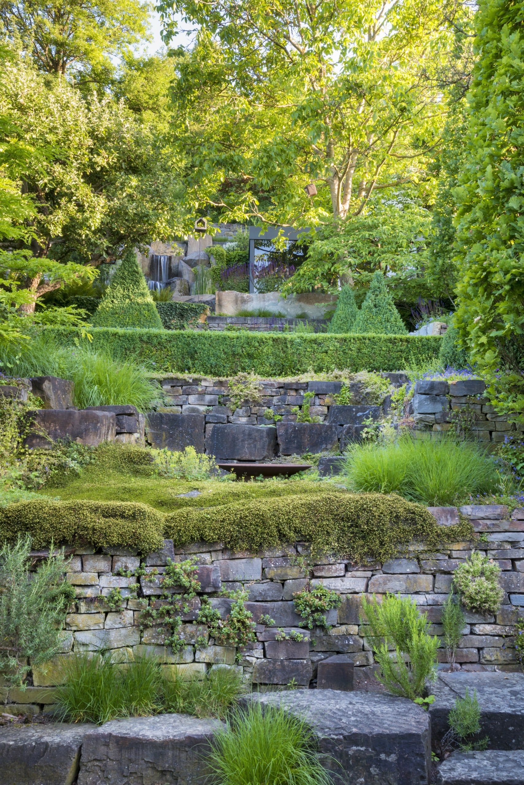 It makes much more sense to use dry stone walls to stabilise slopes and make the space useable. By cleverly constructing terraces, the space becomes bigger, and the maintenance easier. These walls also make ideal seats and tables. Other advantages include their flexibility, which makes them less vulnerable to frost, and how they create a habitat for animals and plants. Dry stone walls can be integrated into the surrounding landscape by adding plants that thrive in rocky conditions, high-quality grasses, perennials and particularly striking trees and shrubs.